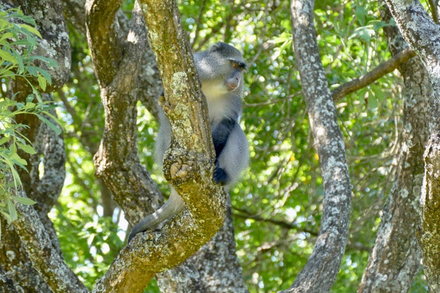 We are not really sure where he goes when he leaves the lodge. We suspect that he moves over to the Tolo side of the property. There are a number of Samango monkey troops on Tolo, and he is probably an older male from one of these troops who has been chased out by younger, stronger males.